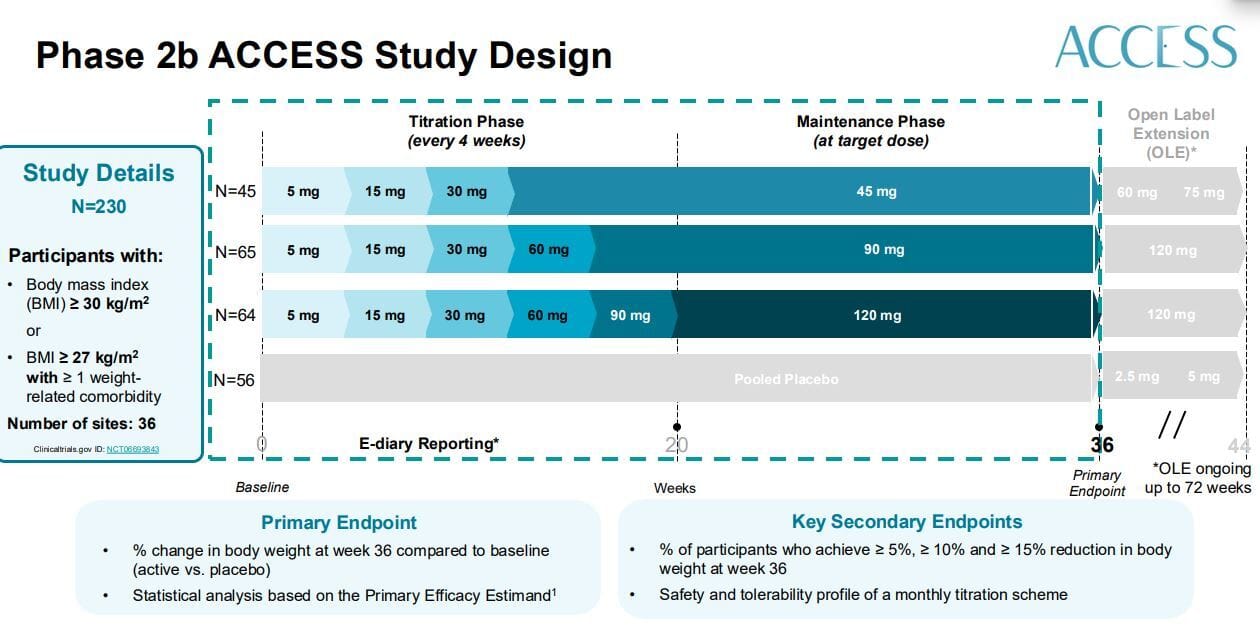 This is something I’ve come to expect from Eli Lilly in terms of being nimble with changing protocols on the fly. Structure essentially confirmed that phase 3 would start with 2.5mg as the starting dose and I think that makes sense in terms of tolerability, but will it change weight loss? That’s an open question.