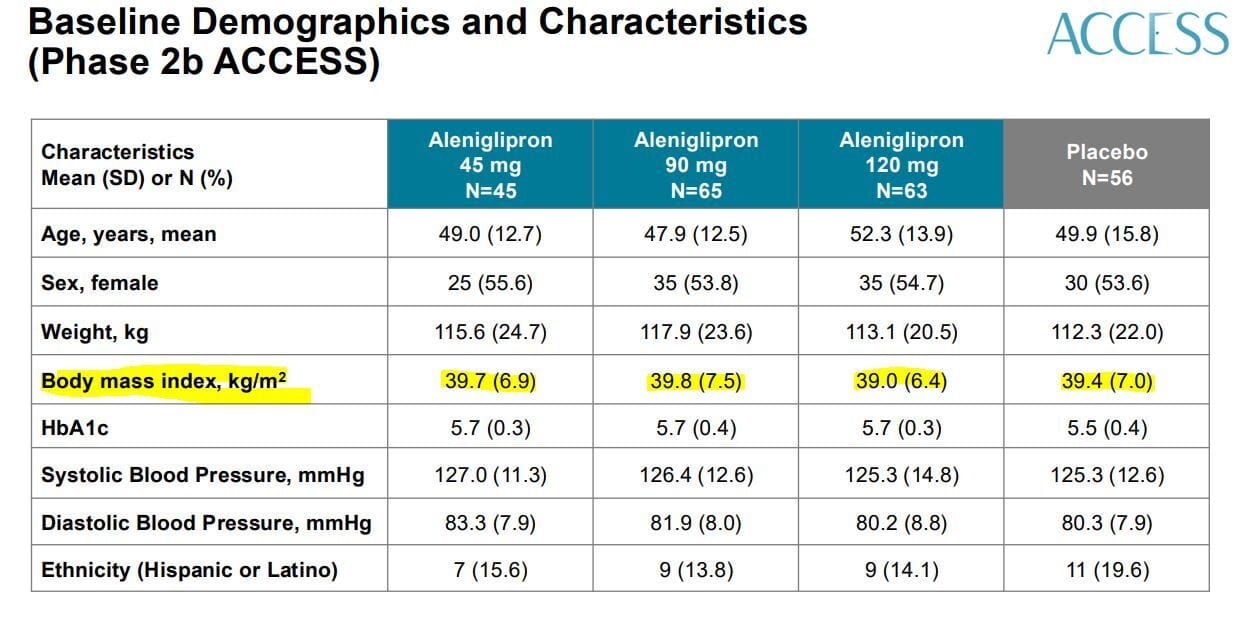 Here’s the trial design and then the demographics with the starting BMI highlighted by me: