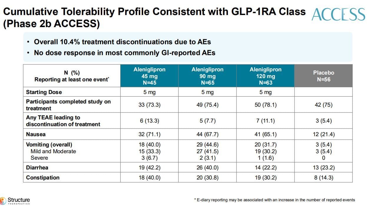 As you can see the answer is yes, there were some elevations in liver enzymes. However, Structure claims all cases of liver enzyme elevation resolved on their own without needing to stop treatment. That’s good, but Lilly reported similar events with orforglipron so it’s still an area to watch going forward.
